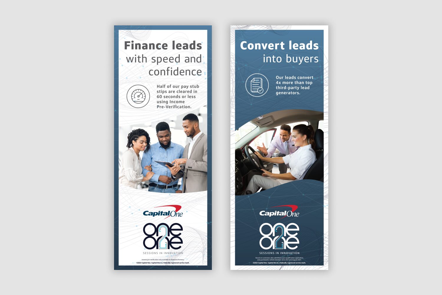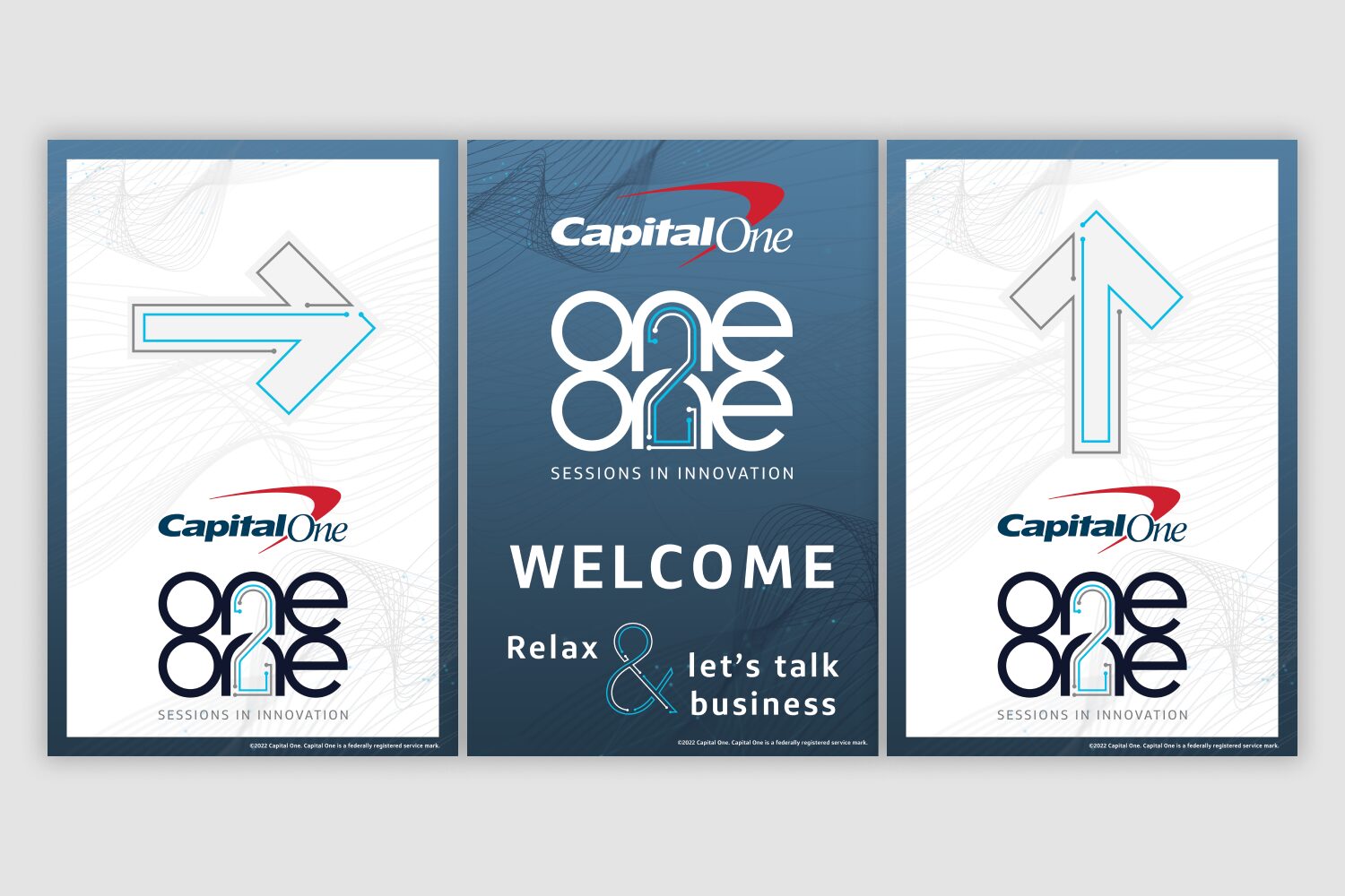 I developed the visual identity for One 2 One, an event series focused on fostering meaningful connections between Capital One’s auto partners and sales teams. This project encompassed designing the logo, event signage, wayfinding systems, and promotional materials, creating a cohesive and memorable brand experience.